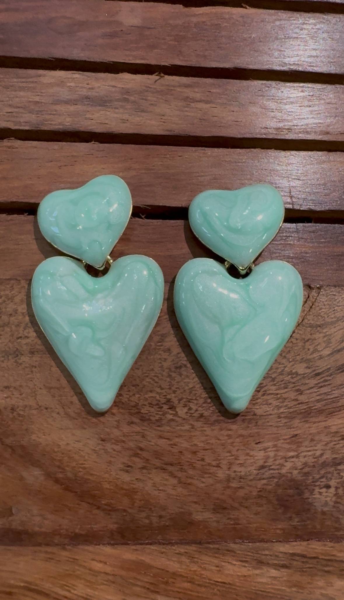 Amora Hearts bring playful elegance to your everyday style with twin heart-shaped drops in a glossy marbled finish. Available in two soft hues—pastel pink and mint green—each pair is linked by a gold-toned connector and designed to add charm to both office ensembles and weekend looks. Whether you lean romantic or refreshing, there’s an Amora for your mood.