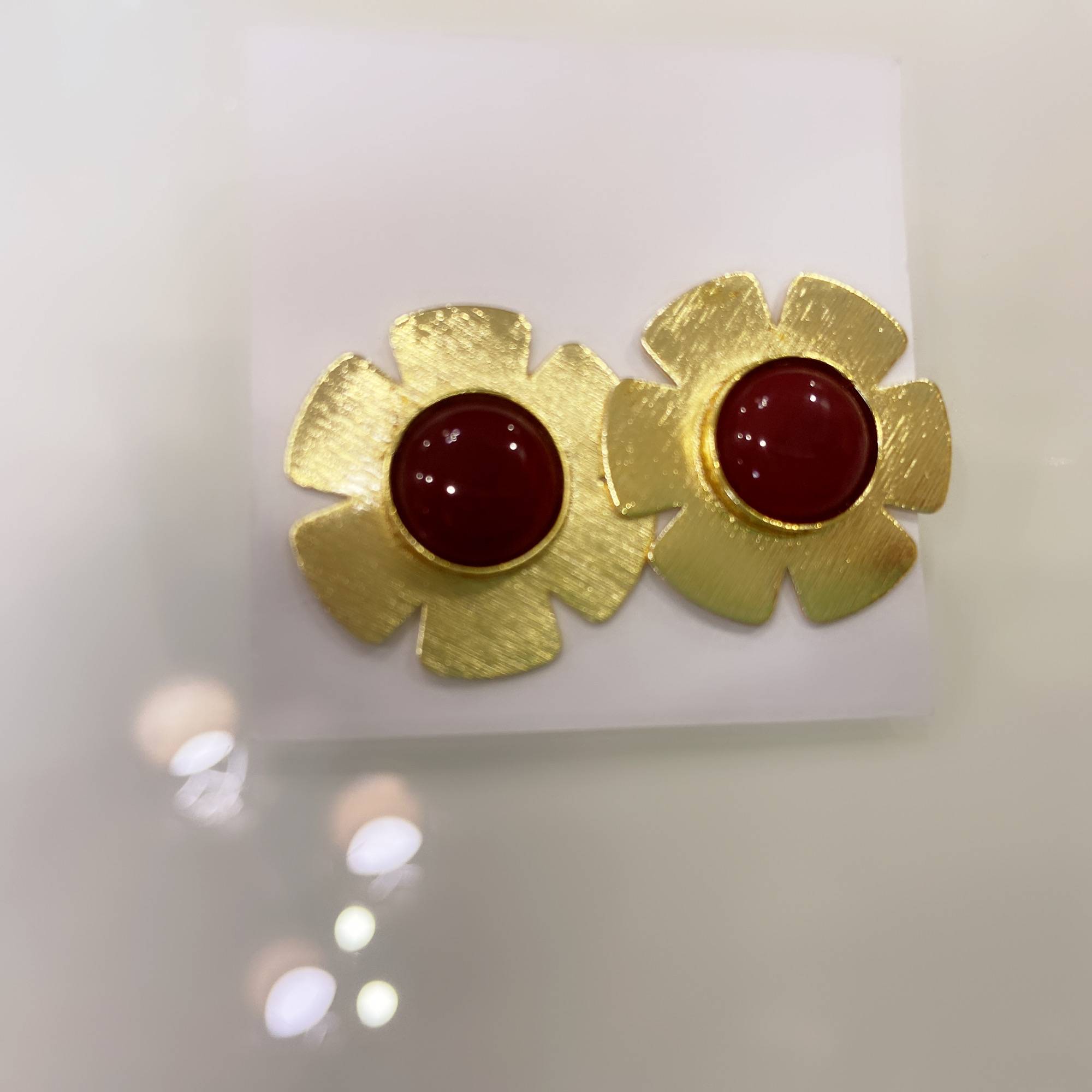Add a pop of retro elegance with Stile Sovrano’s bold floral stud earrings, available in red, green, blue, and black. Each pair features a stylized flower crafted in brushed gold-tone metal, centered with a glossy cabochon for a striking finish. Lightweight and easy to wear, these earrings blend vintage glam with modern versatility—perfect for elevating both casual and sophisticated looks.