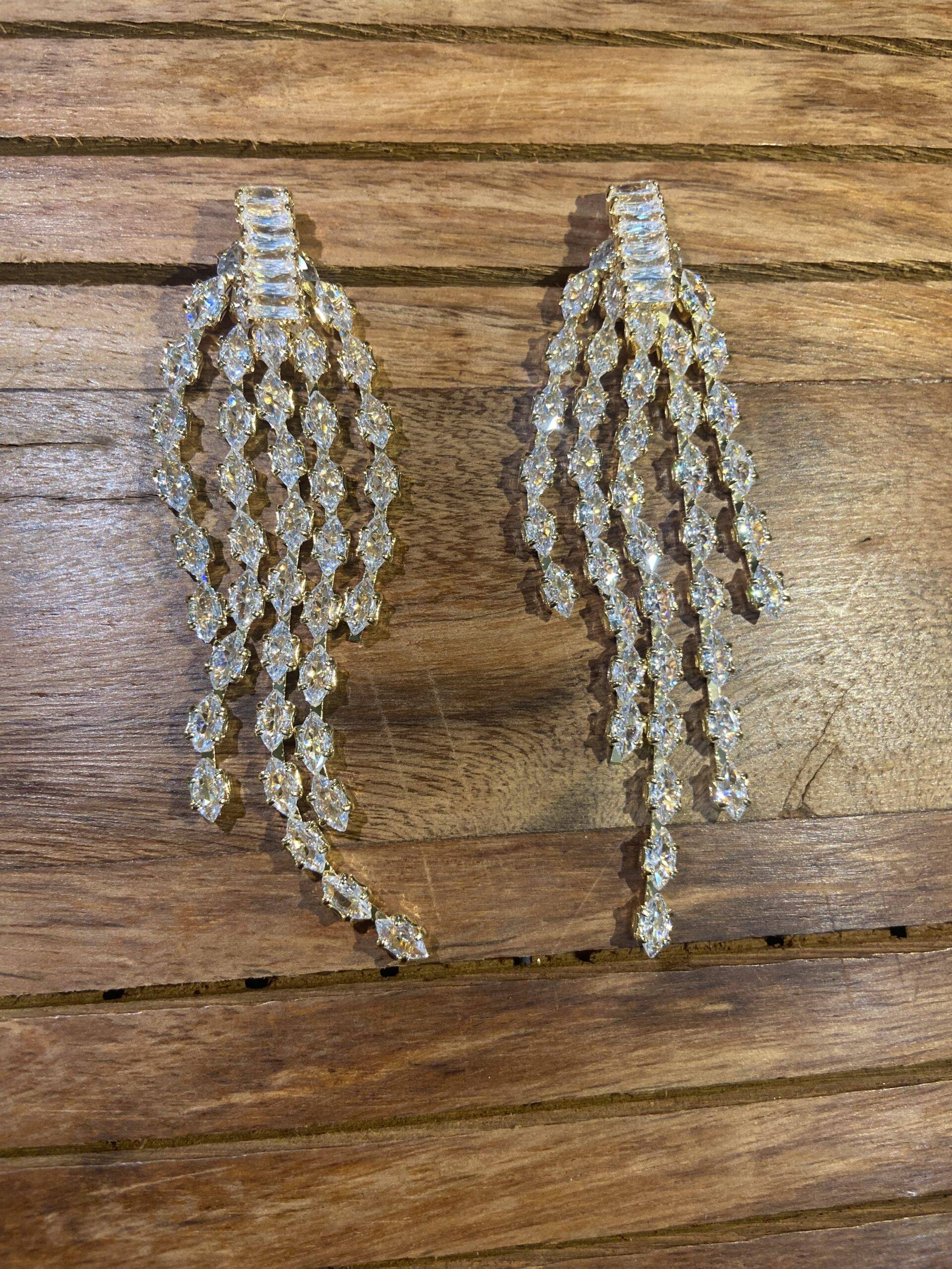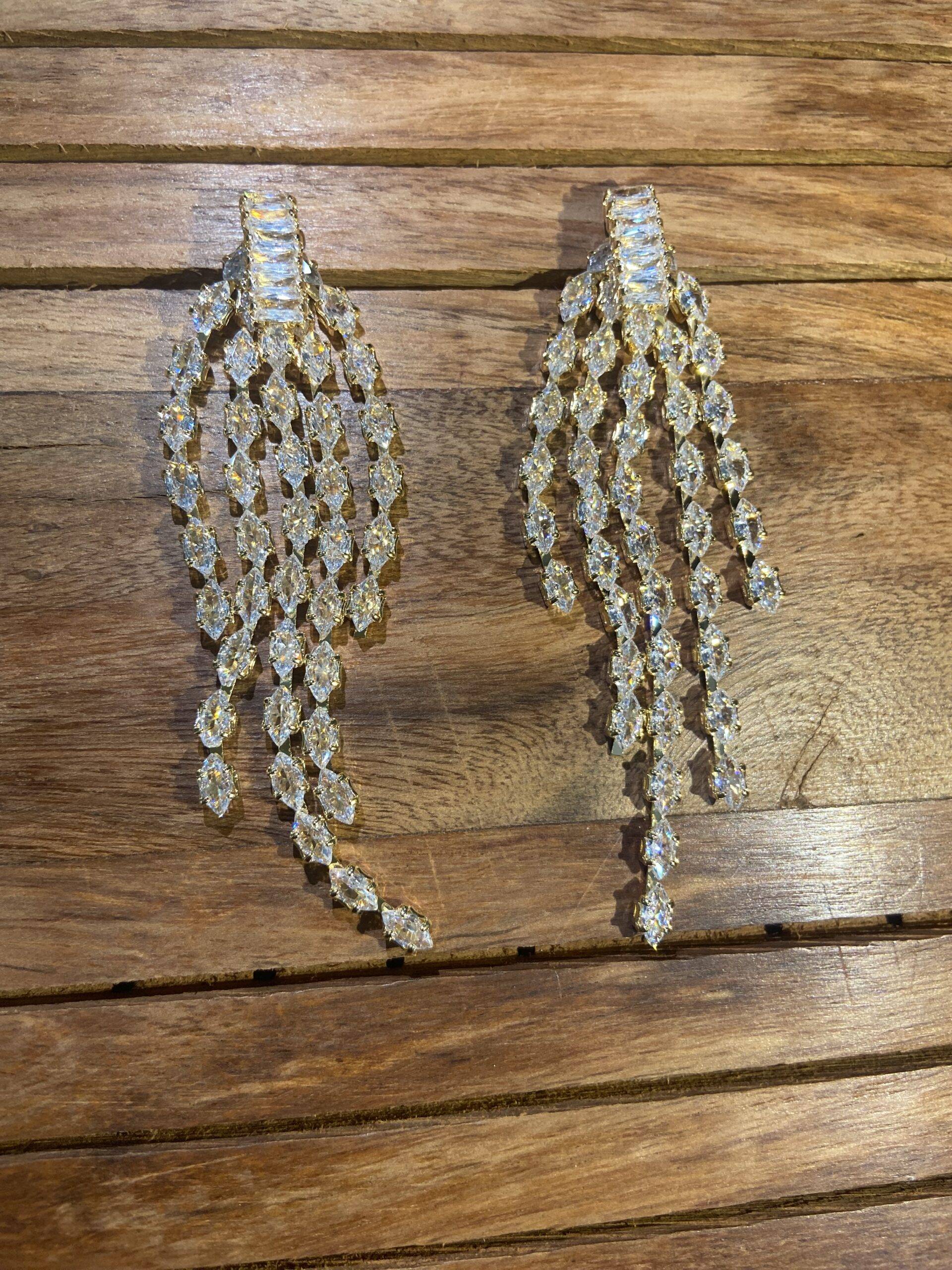 Elevate your ensemble with the Celestia Cascade earrings by Stile Sovrano—an opulent pair of multi-strand rhinestone drops designed to dazzle. Featuring gold-toned links and crystal-clear stones in a cascading silhouette, these earrings offer timeless glamour for festive soirées and formal occasions. Lightweight yet striking, they blend heritage elegance with modern sparkle. Ideal for gifting or statement styling.