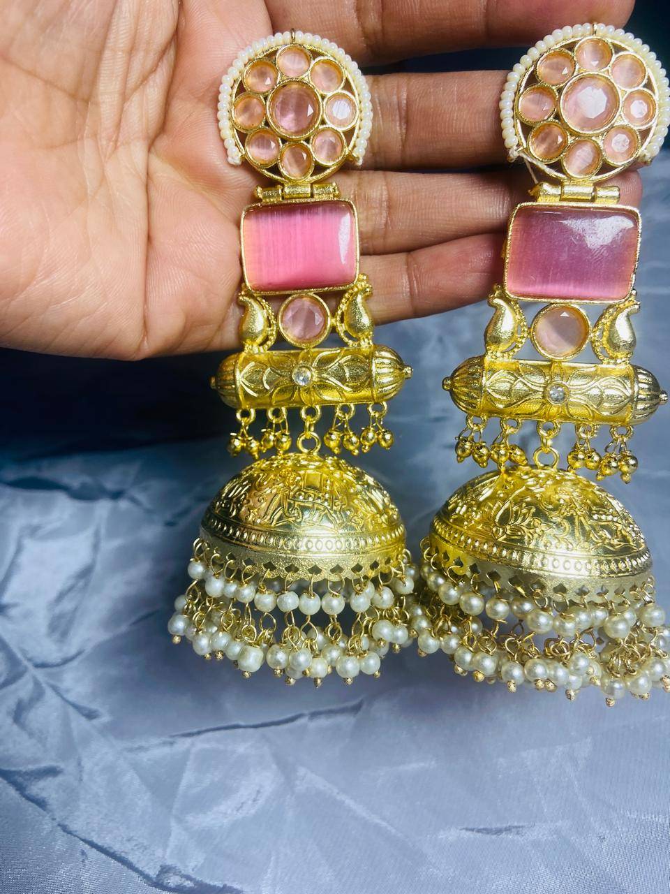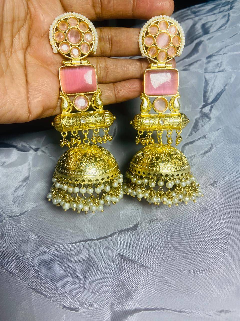 HERITAGE KASHMIRI CRAFTSMANSHIP: Inspired by traditional Kashmiri jewelry artistry, showcasing intricate metal detailing and classic jhumka silhouettes.