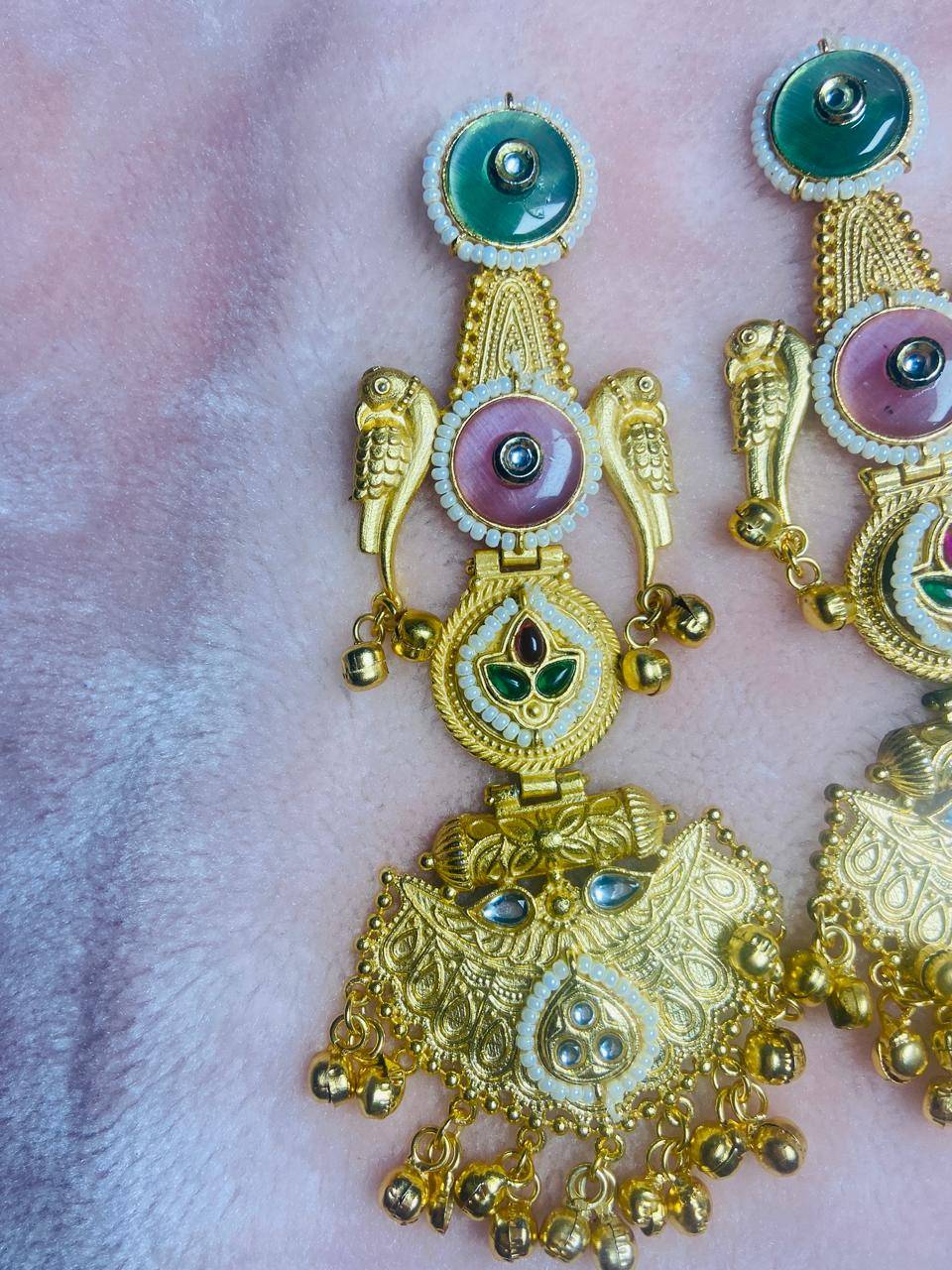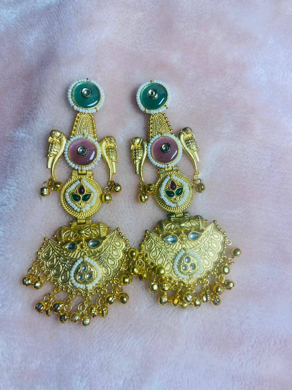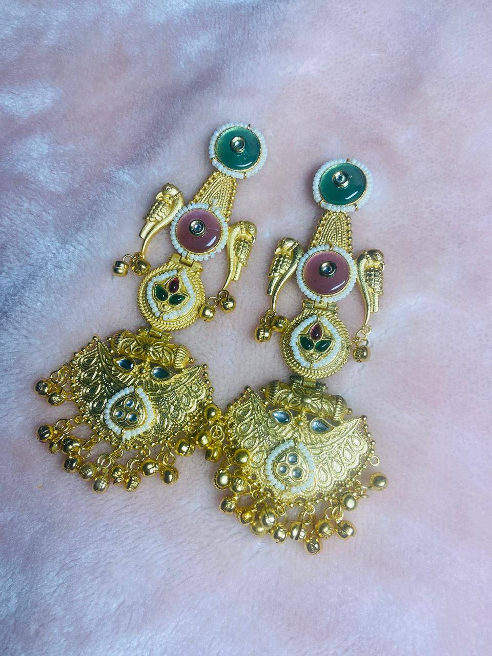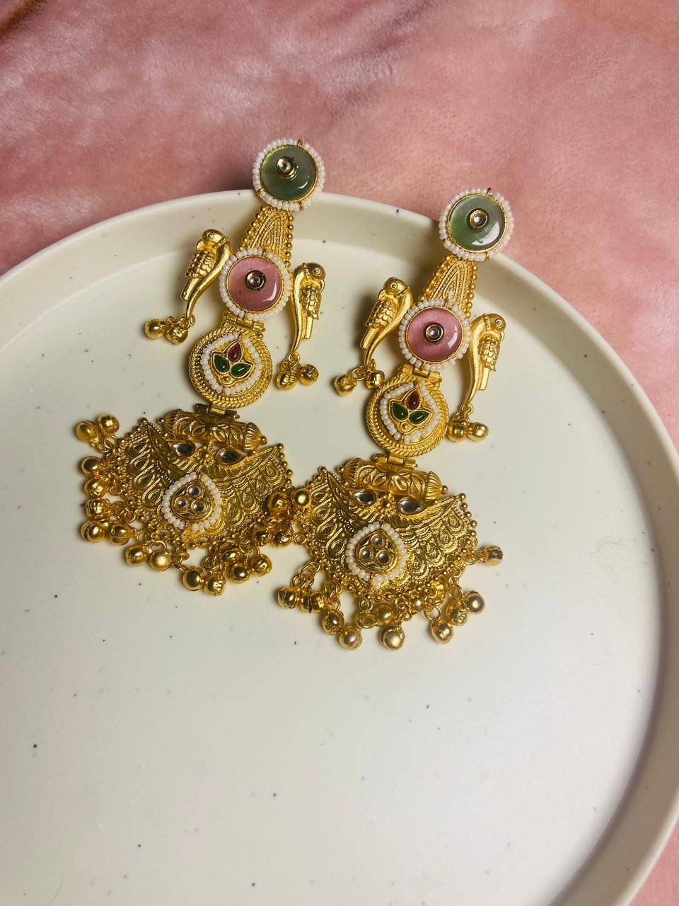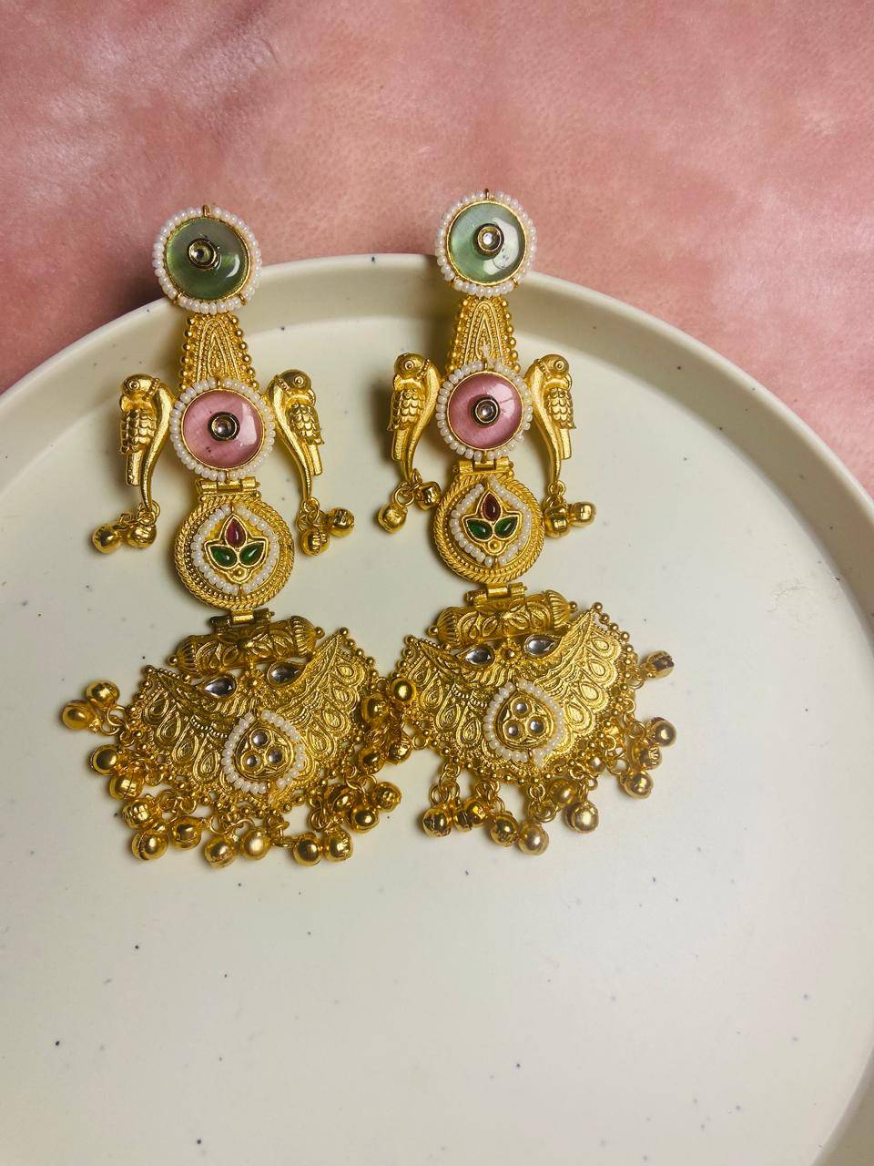Elevate your ethnic ensemble with the royal elegance of the Stile Sovrano Noor-e-Mehfil Peacock Meenakari Jhumka Earrings. Designed to reflect the grandeur of Indian heritage jewelry, this statement pair showcases exquisitely detailed peacock motifs paired with traditional meenakari artistry. The ornate jhumka base is enriched with delicate bead drops that add movement and ceremonial charm, while the balanced structure ensures a comfortable yet impactful wear. Every element speaks of skilled craftsmanship and timeless design, making these earrings a perfect choice for bridal functions, festive occasions, and cultural celebrations. A true expression of regal femininity, these earrings are crafted for women who appreciate heritage luxury with a bold, graceful presence.