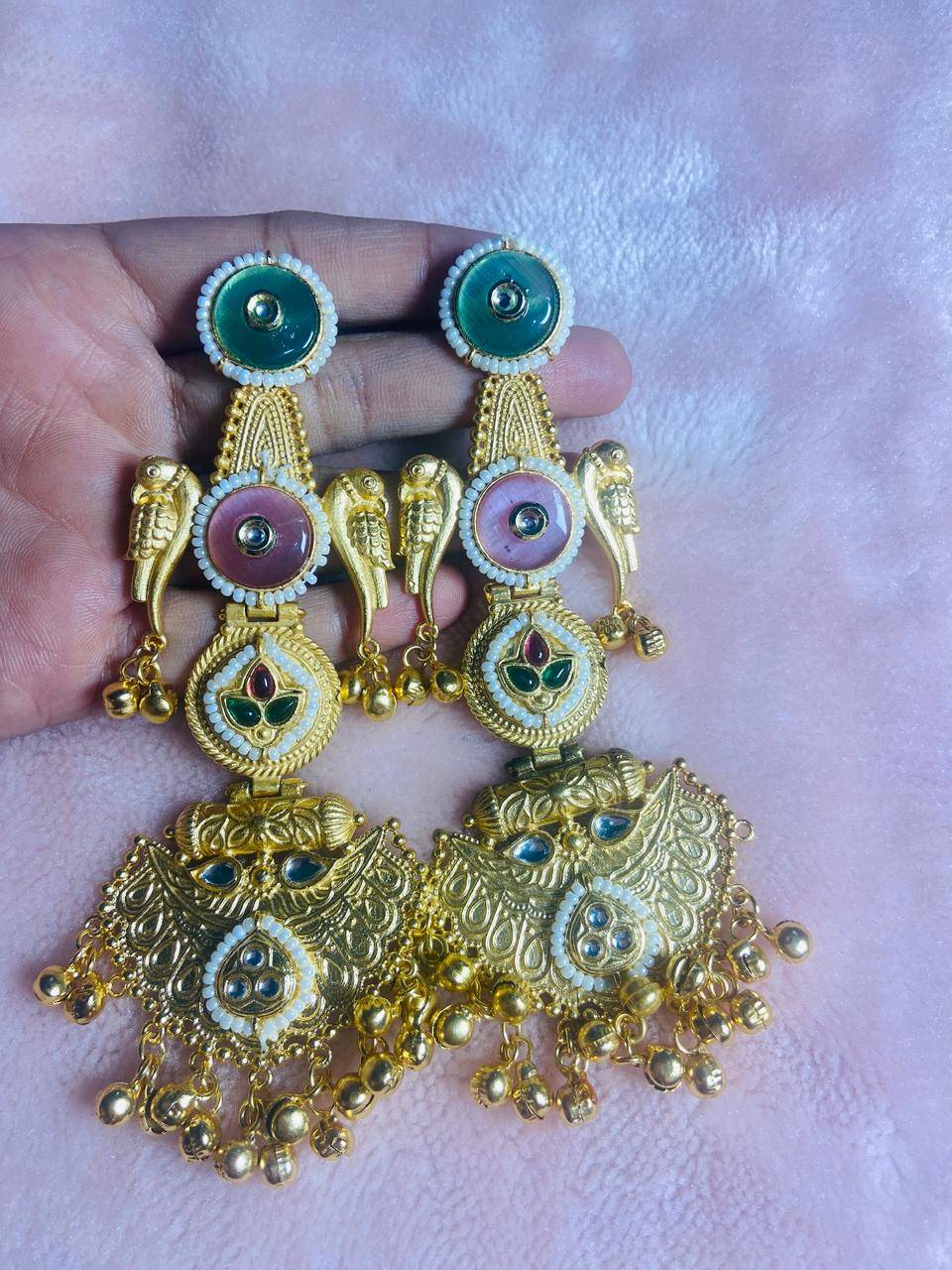 • STATEMENT JHUMKA SILHOUETTE: Grand bell-shaped drops adorned with ghungroo-style danglers for a majestic, ceremonial finish.