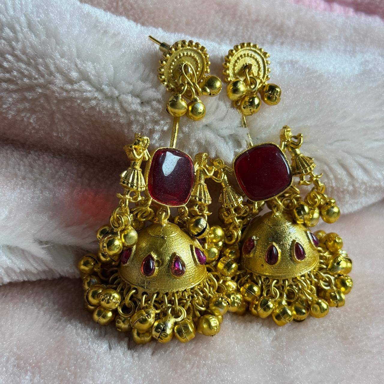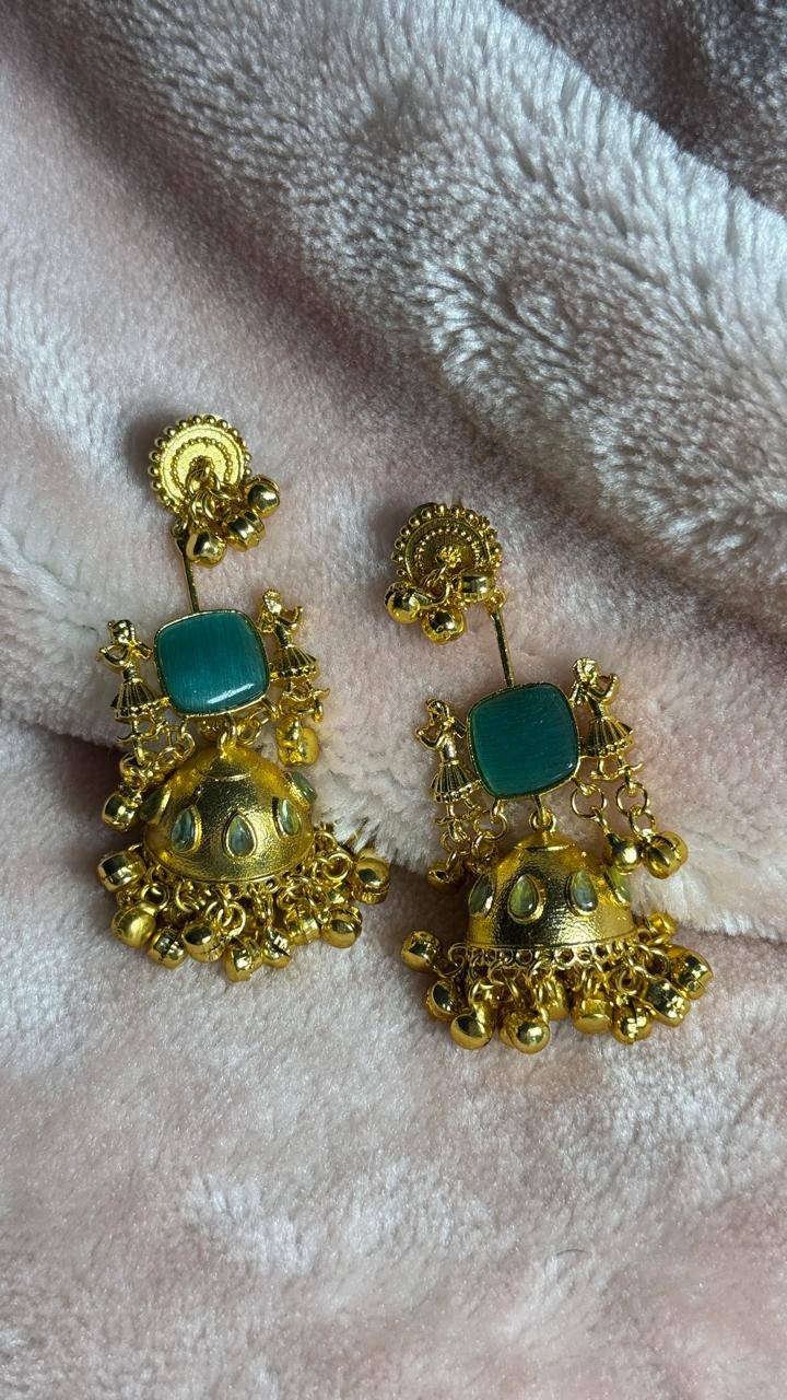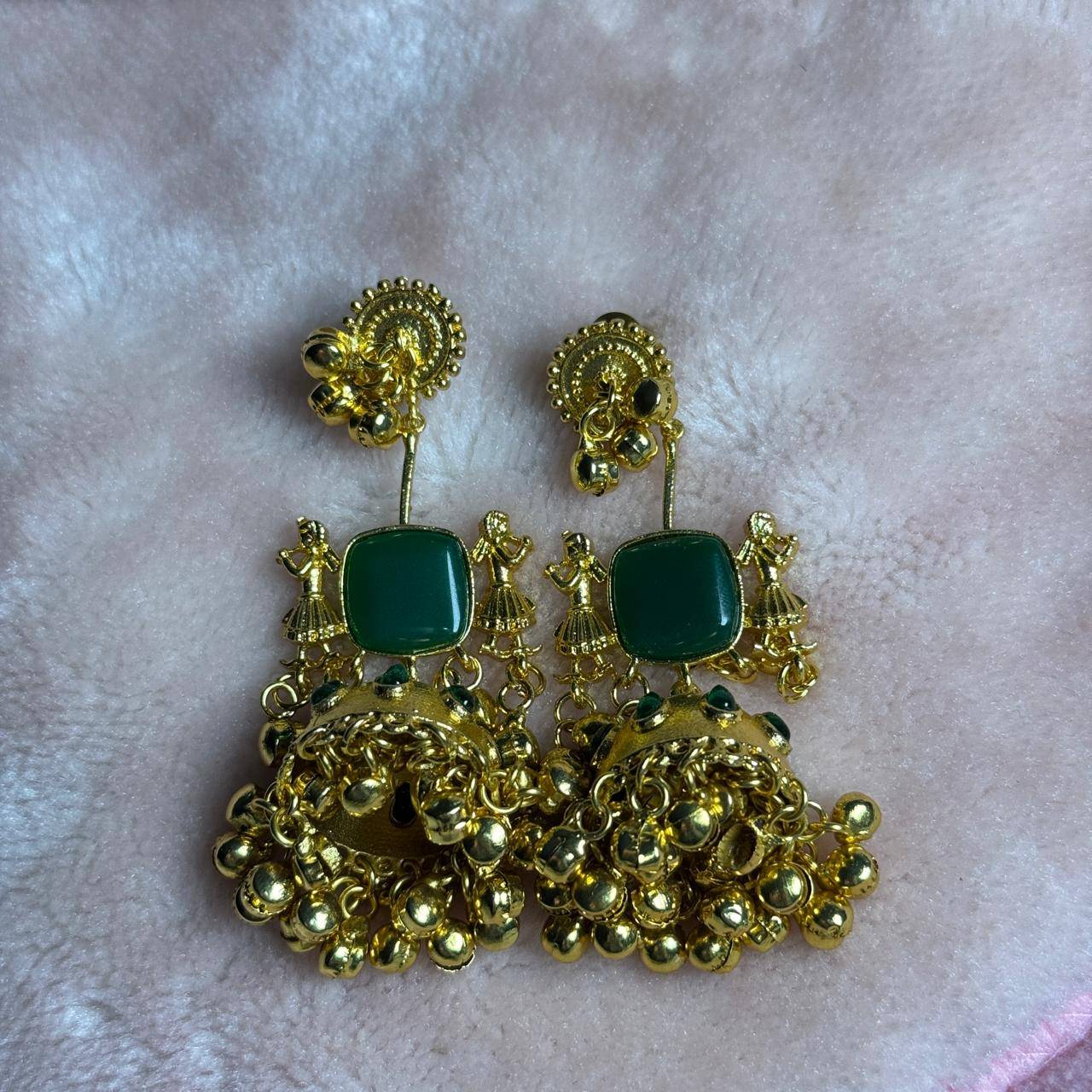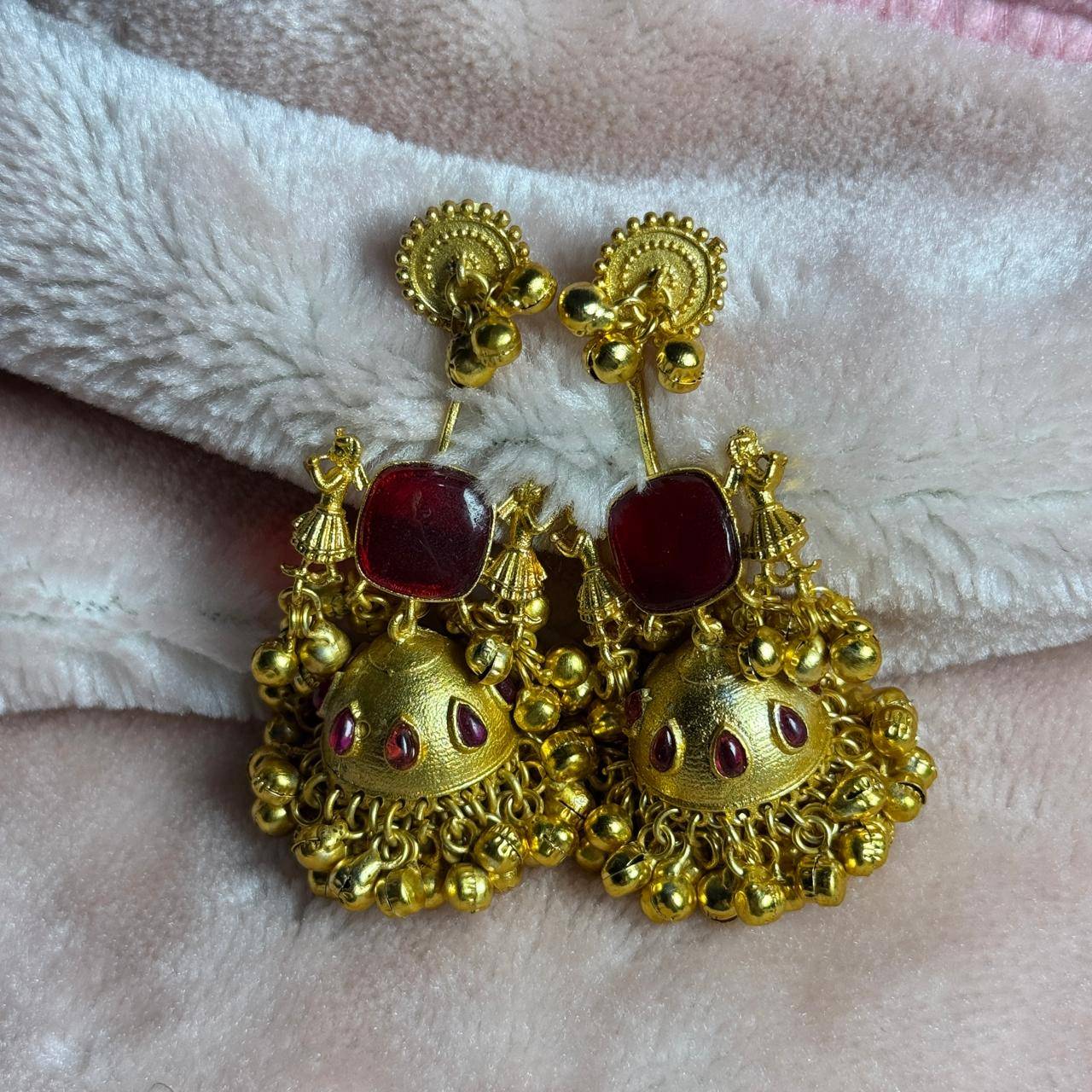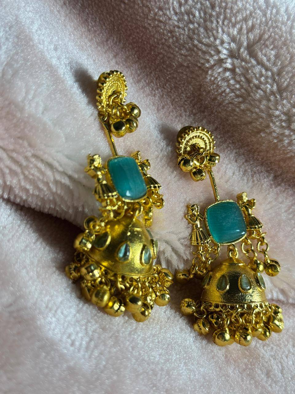 Heritage Temple-Inspired Design – Intricately crafted jhumka earrings featuring traditional Indian dancer motifs, inspired by classical artistry and timeless craftsmanship.