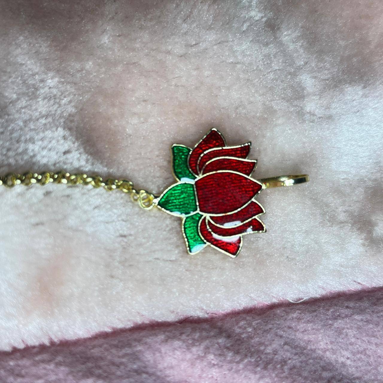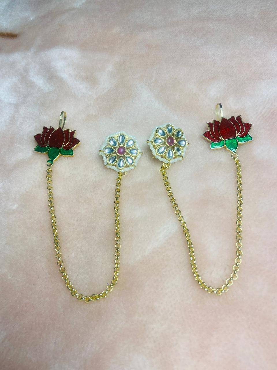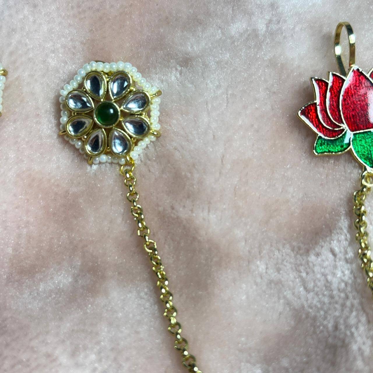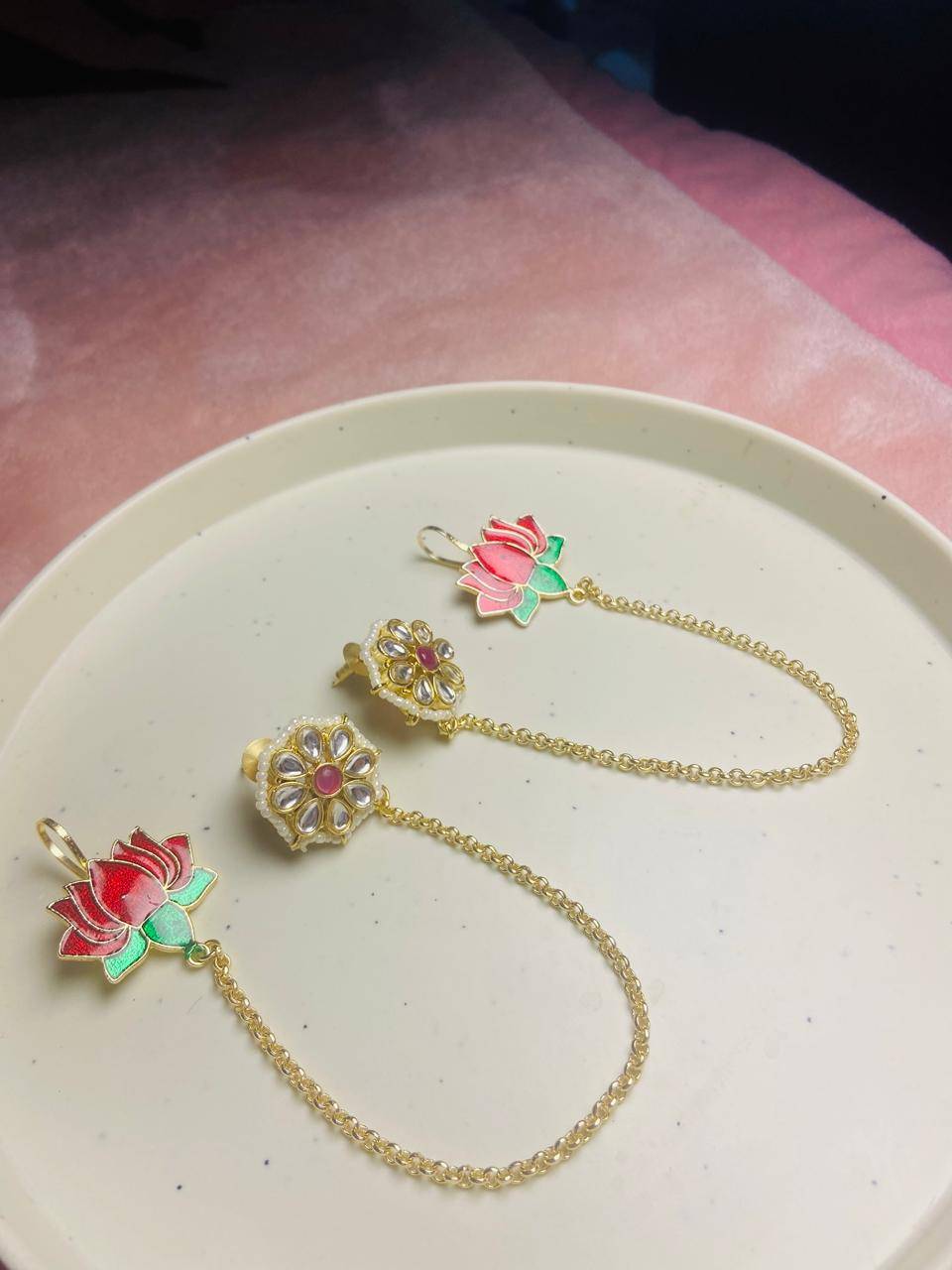 Meenakari & Kundan-Style Accents – Rich enamel lotus detailing paired with kundan-style stones and pearl-style borders for visual depth.