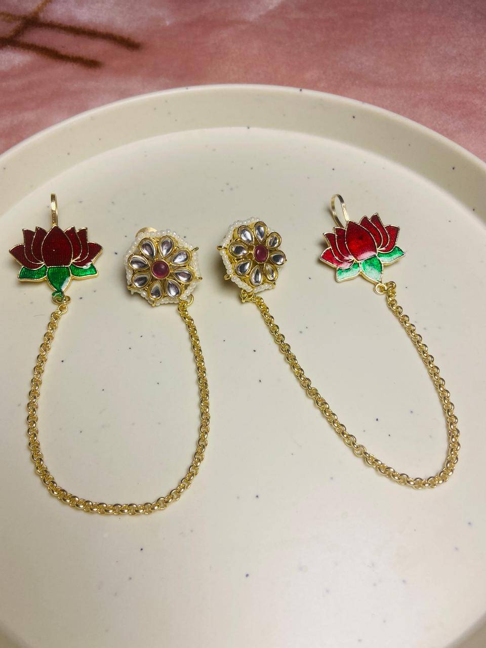 Measurements & Fit – Approx. Length: 2.5 cm | Motif Width: 2–2.5 cm | Chain Length: 17 cm| Weight: 24 grams per pair, Lightweight to medium, comfortable for statement earrings.