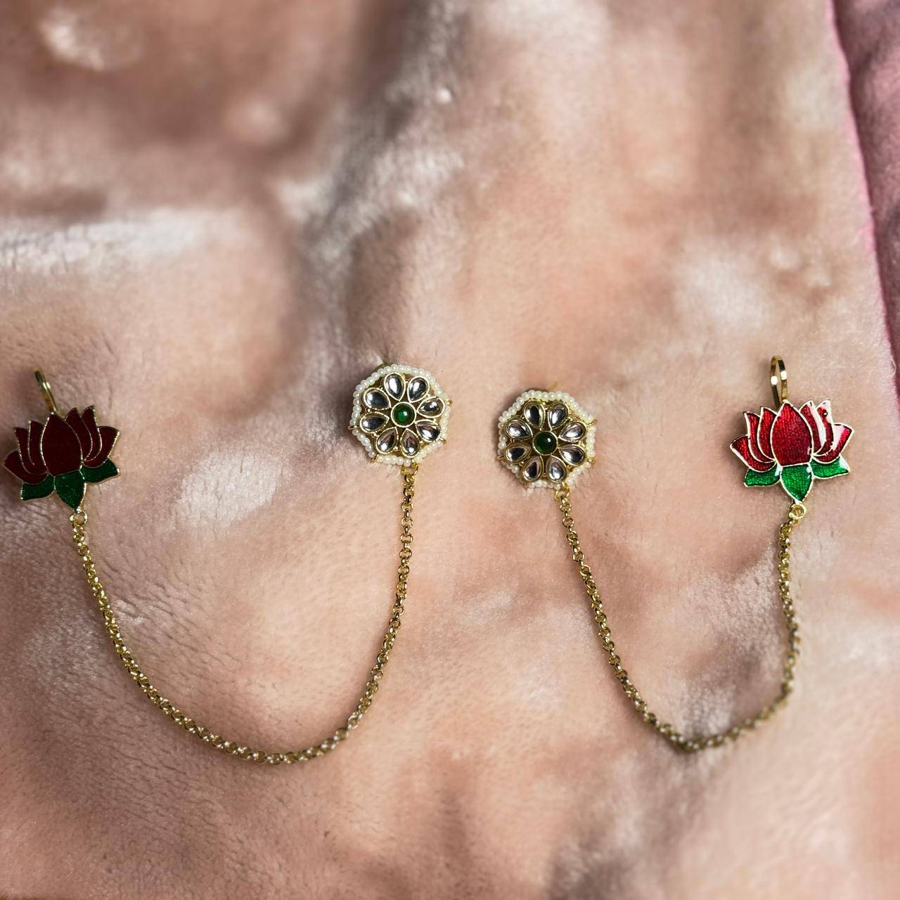 Haritaze Indian Lotus-Inspired Design – Statement chain earrings featuring a lotus motif rooted in Indian heritage, reimagined with a modern luxury sensibility.