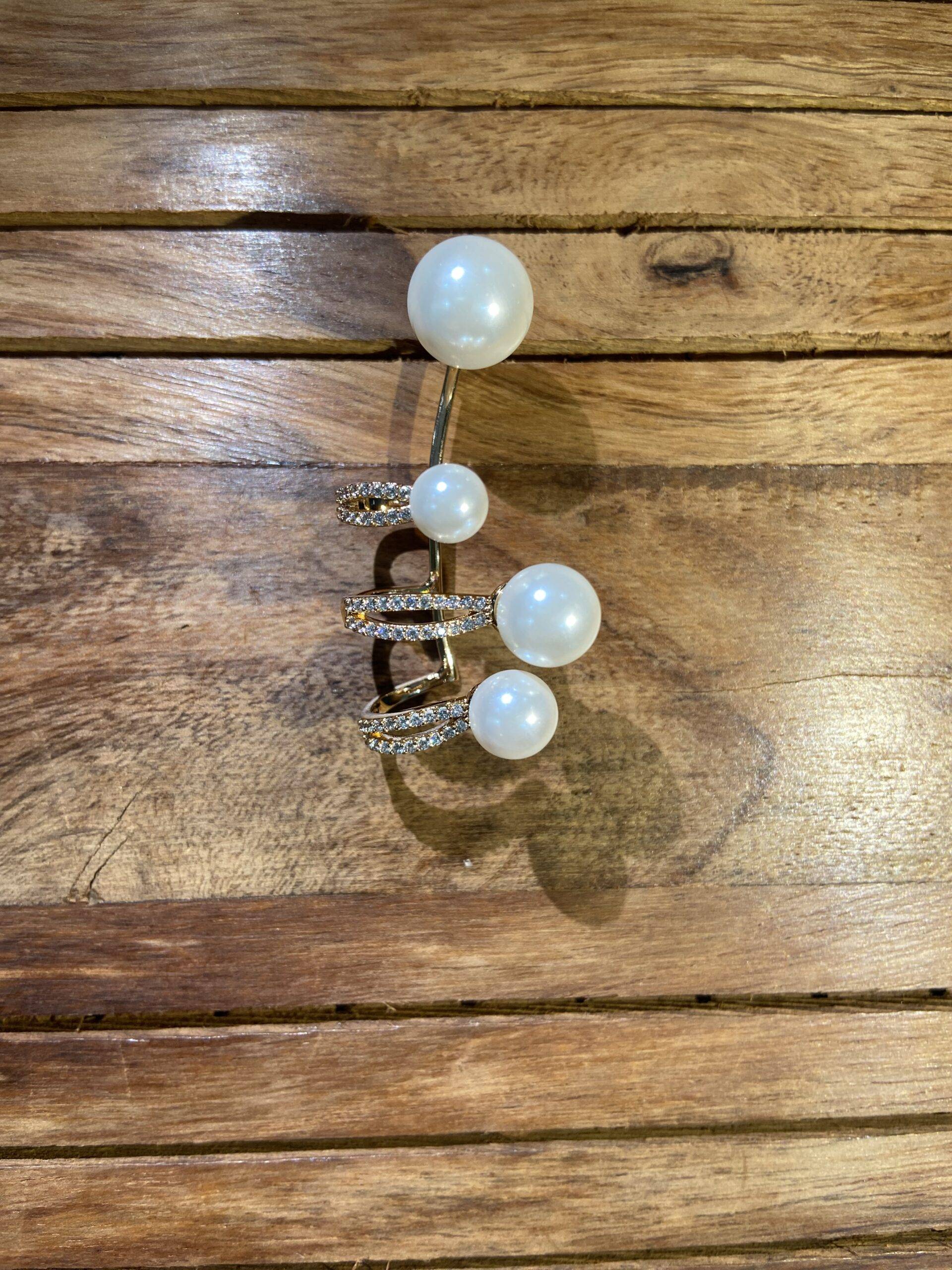 Stile Sovrano’s Pearl Halo Ear Cuff blends sculptural form with timeless charm. Designed to contour the ear, this cuff features a large imitation pearl nestled in a gold-tone setting, surrounded by sparkling pavé-style embellishments. Its asymmetrical silhouette offers a modern twist on classic jewellery, making it ideal for bridal styling, festive occasions, or statement everyday wear. Lightweight and secure, this piece reflects the brand’s commitment to fine imitation jewellery with a focus on comfort, clarity, and graceful impact.