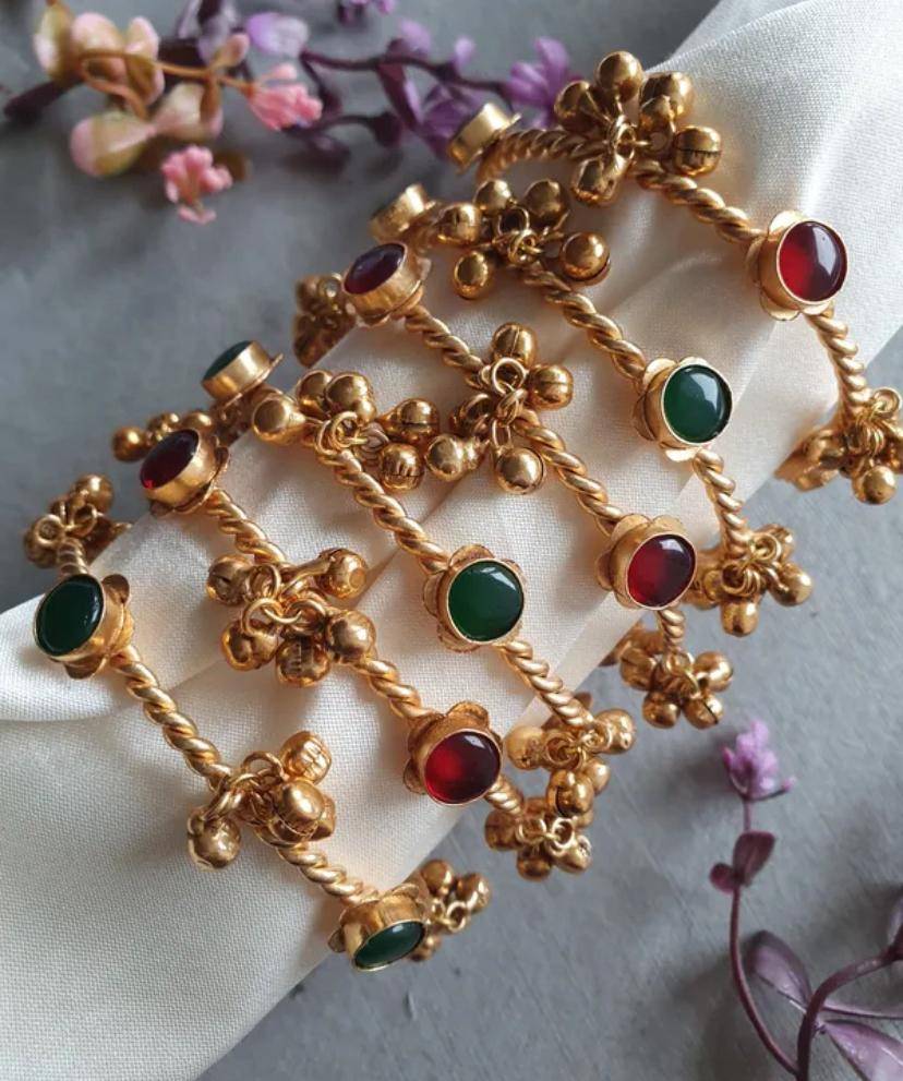 Haritaze Indian Royal Inspiration – Statement bangles inspired by traditional Indian ghungroo ornamentation and regal festive styling.