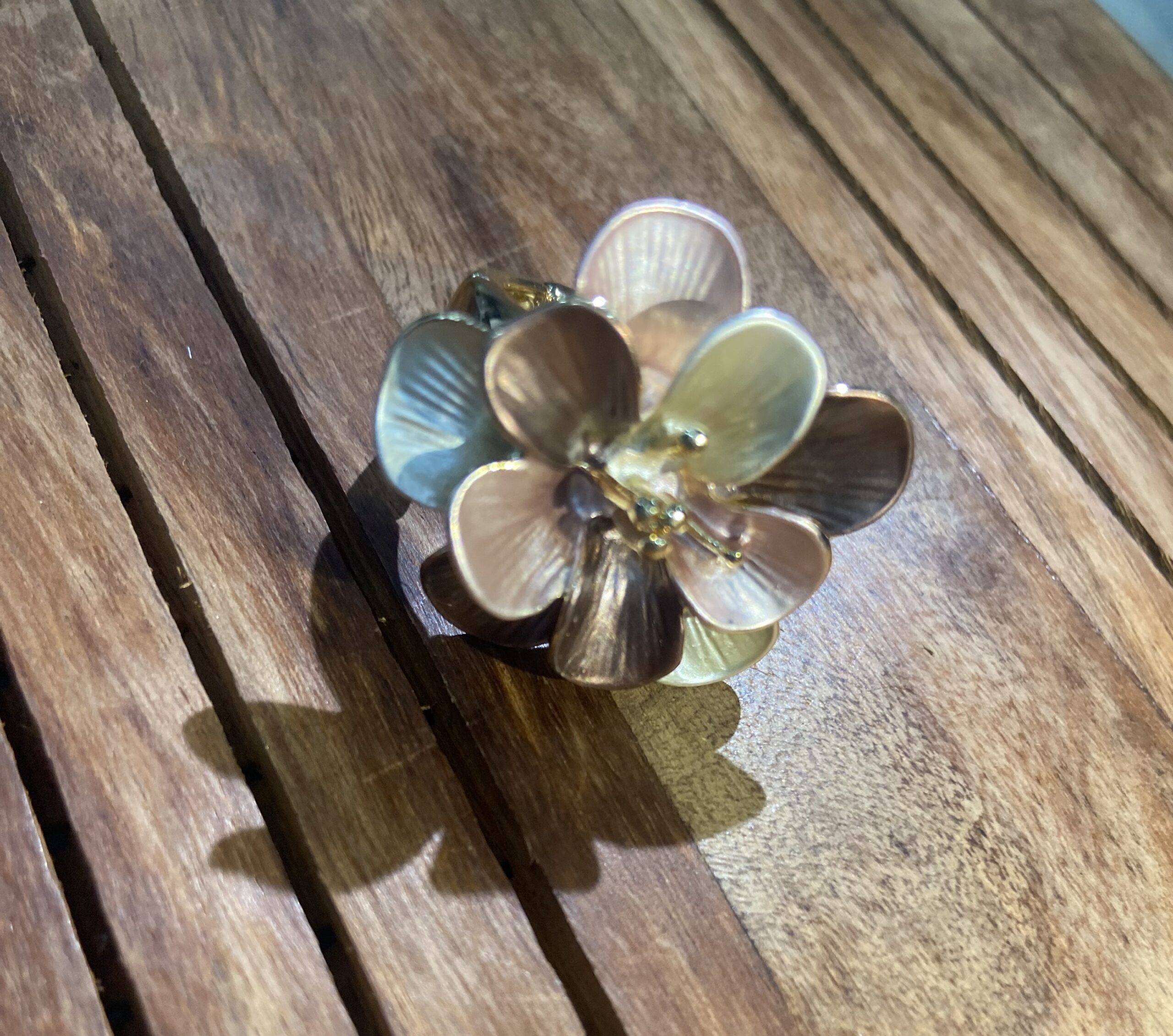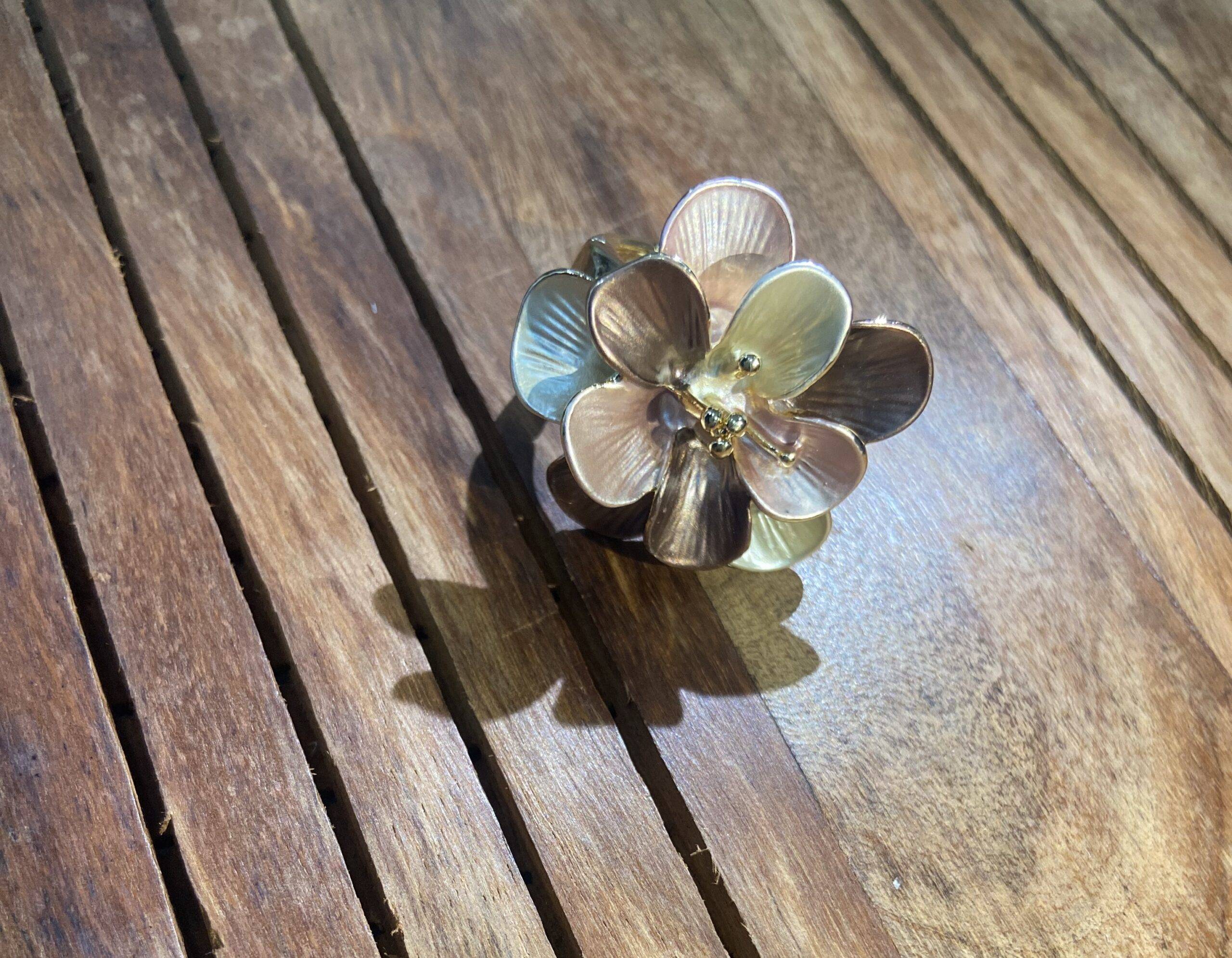 Celebrate timeless craftsmanship with the Vintage Maravilla ring by Stile Sovrano. Sculpted in layered petals of copper, shell, and gold-toned metal, this statement piece blooms with textured brilliance. Ideal for festive styling, gifting, or adding a touch of vintage charm to your ensemble, it’s a radiant nod to nature’s elegance and metallic warmth.