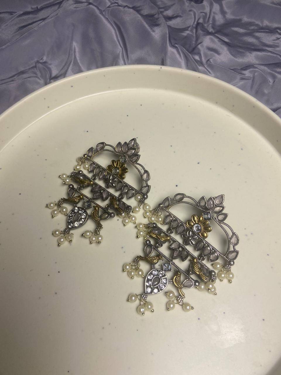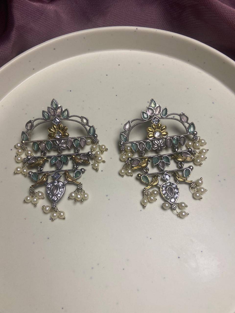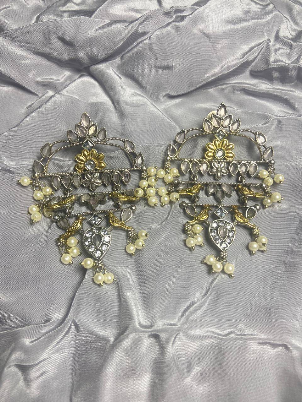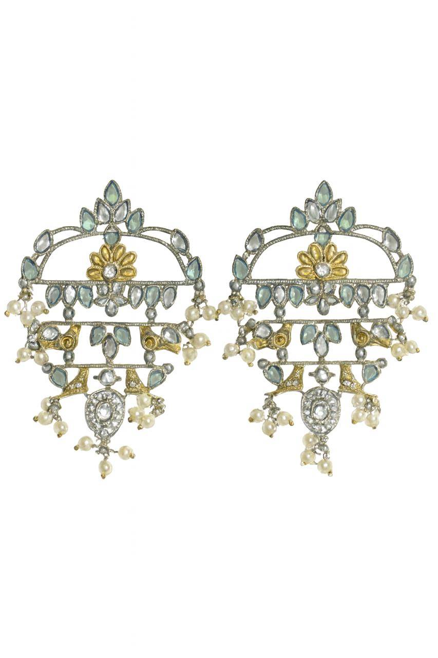 The Stile Sovrano Zar-e-Kashmir Kundan Chandbali Earrings are a tribute to timeless Kashmiri artistry and royal elegance. Designed in a classic chandbali form, this pair features layered arches embellished with kundan-style stones and finished with soft pearl drops for fluid movement. The dual-tone detailing adds vintage depth, while the balanced structure ensures comfortable wear despite the statement size. Perfect for weddings, festive gatherings, and traditional celebrations, these earrings elevate ethnic ensembles with heritage charm and refined sophistication. Created for women who value craftsmanship, culture, and understated grandeur, this design is a distinguished addition to any ethnic jewelry collection.
