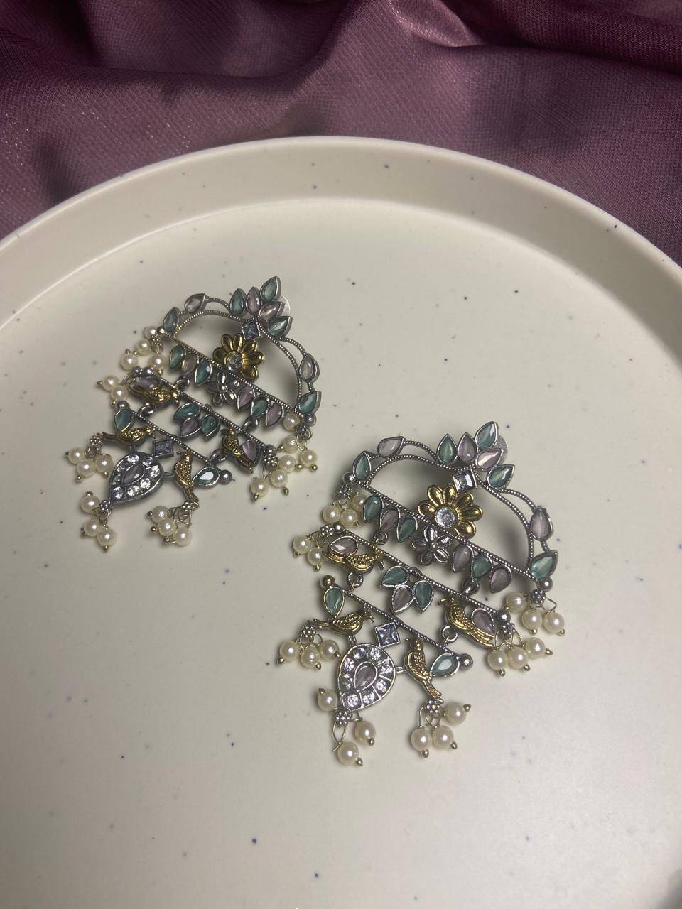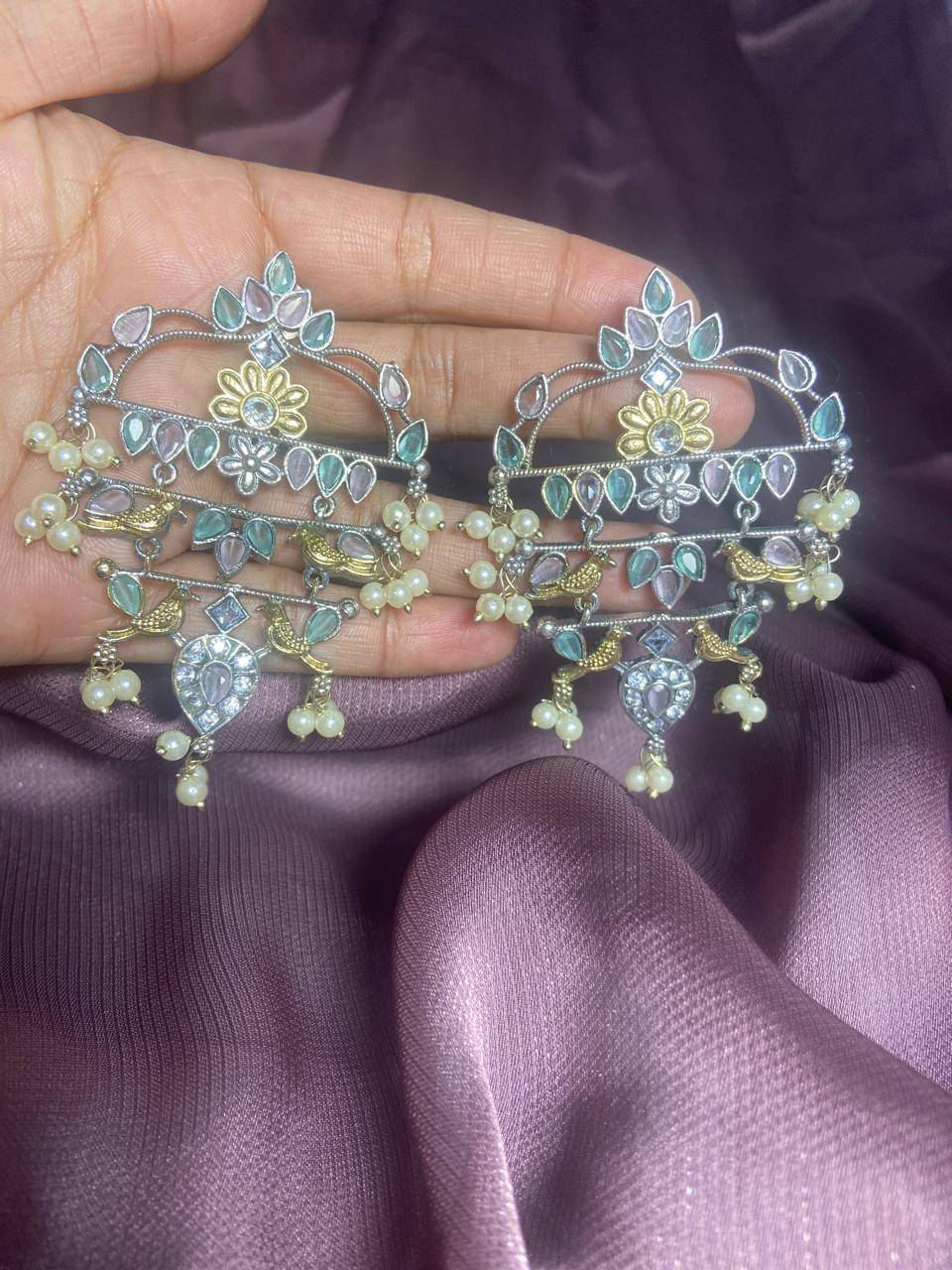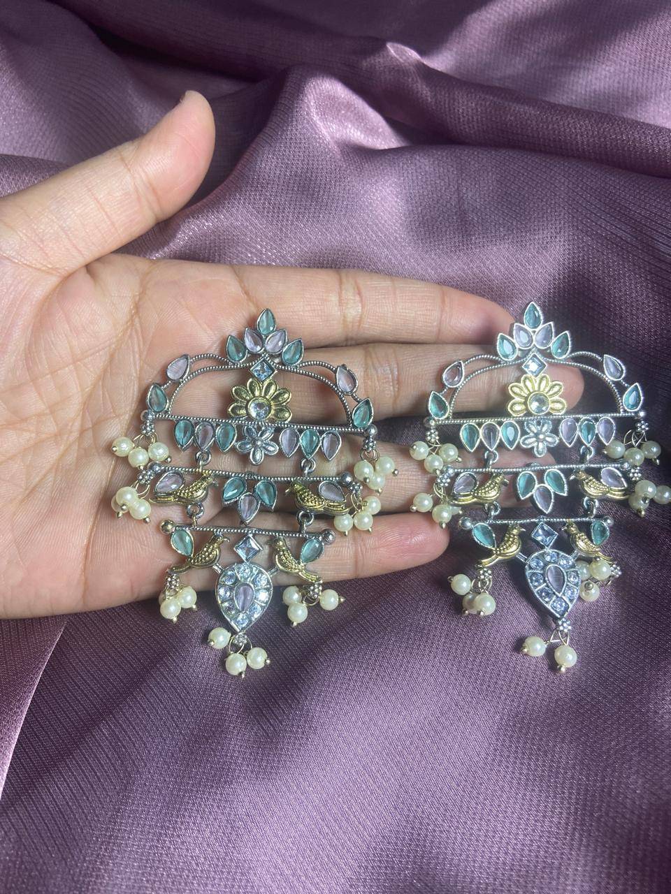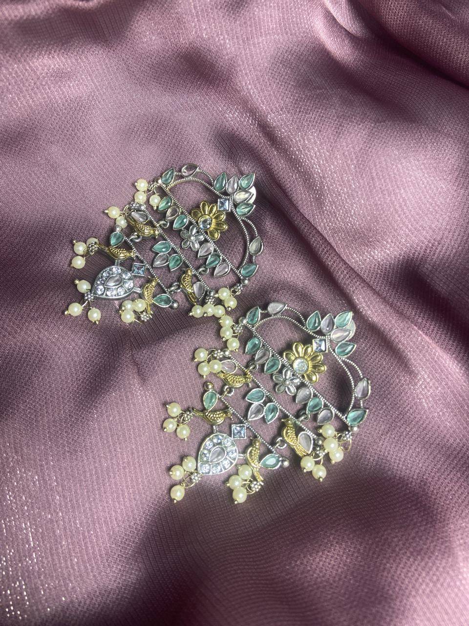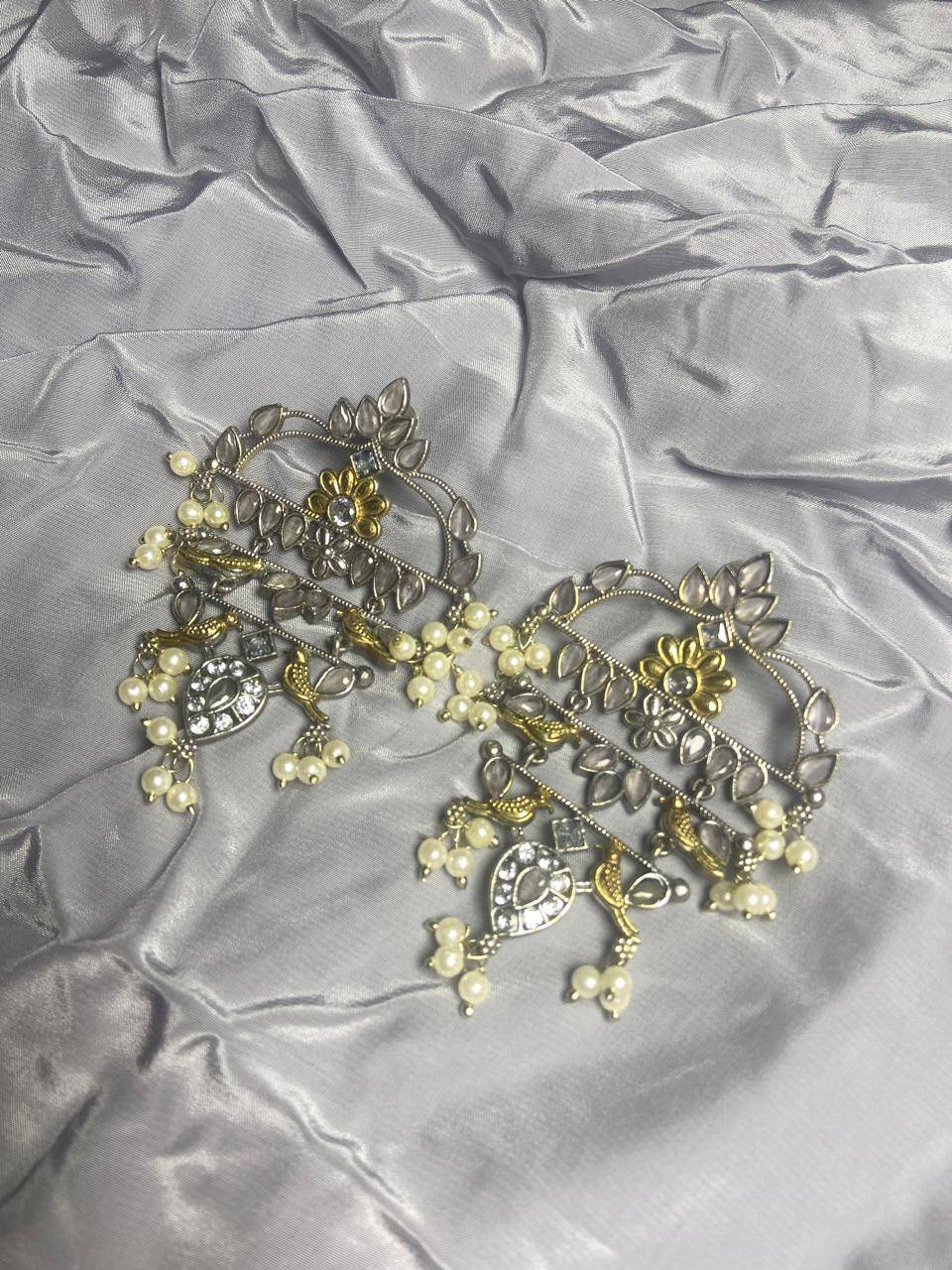 The Stile Sovrano Zar-e-Kashmir Kundan Chandbali Earrings are a tribute to timeless Kashmiri artistry and royal elegance. Designed in a classic chandbali form, this pair features layered arches embellished with kundan-style stones and finished with soft pearl drops for fluid movement. The dual-tone detailing adds vintage depth, while the balanced structure ensures comfortable wear despite the statement size. Perfect for weddings, festive gatherings, and traditional celebrations, these earrings elevate ethnic ensembles with heritage charm and refined sophistication. Created for women who value craftsmanship, culture, and understated grandeur, this design is a distinguished addition to any ethnic jewelry collection.