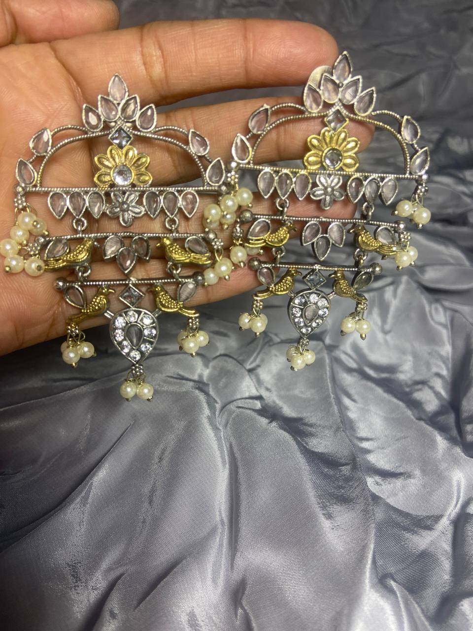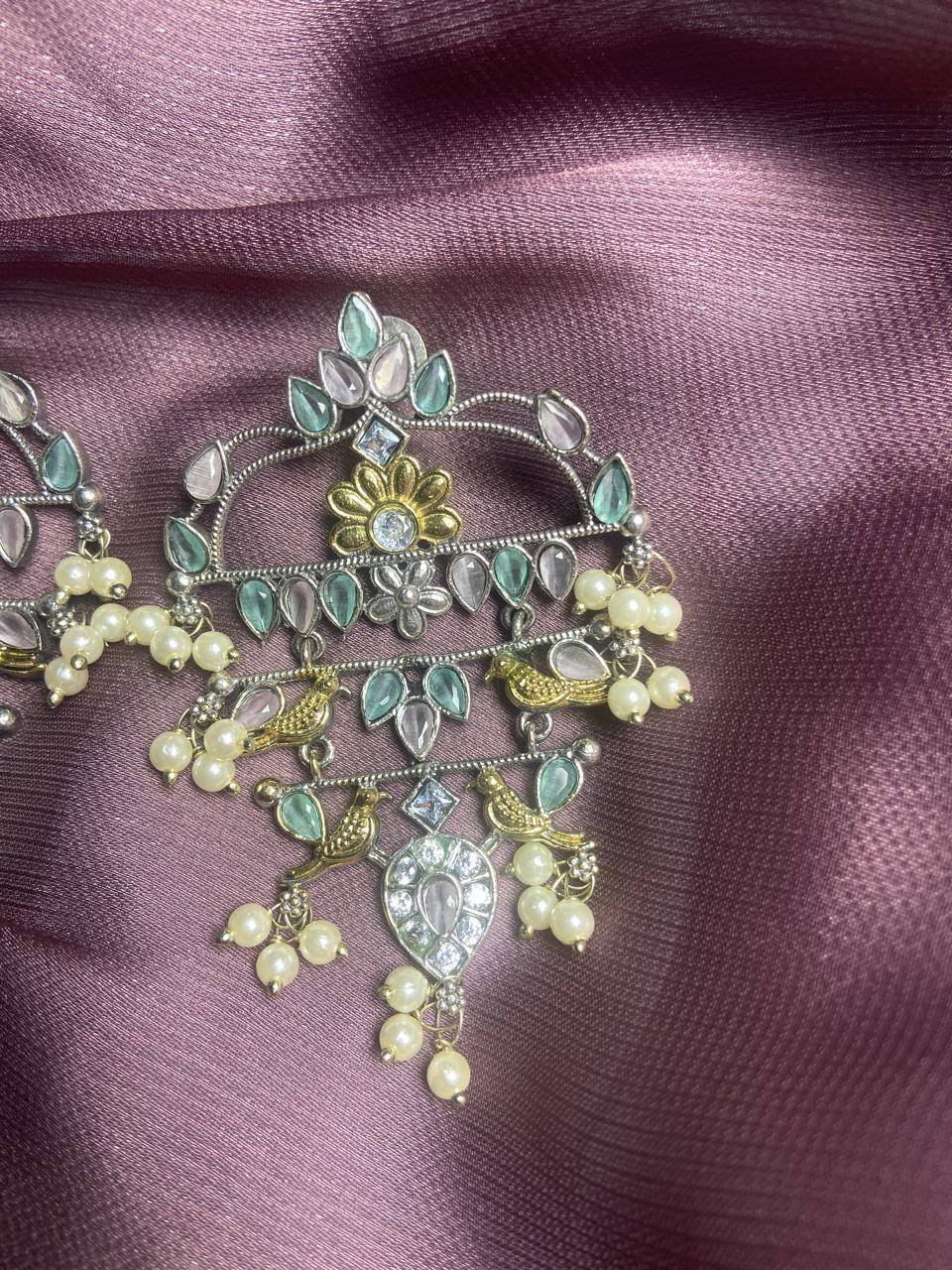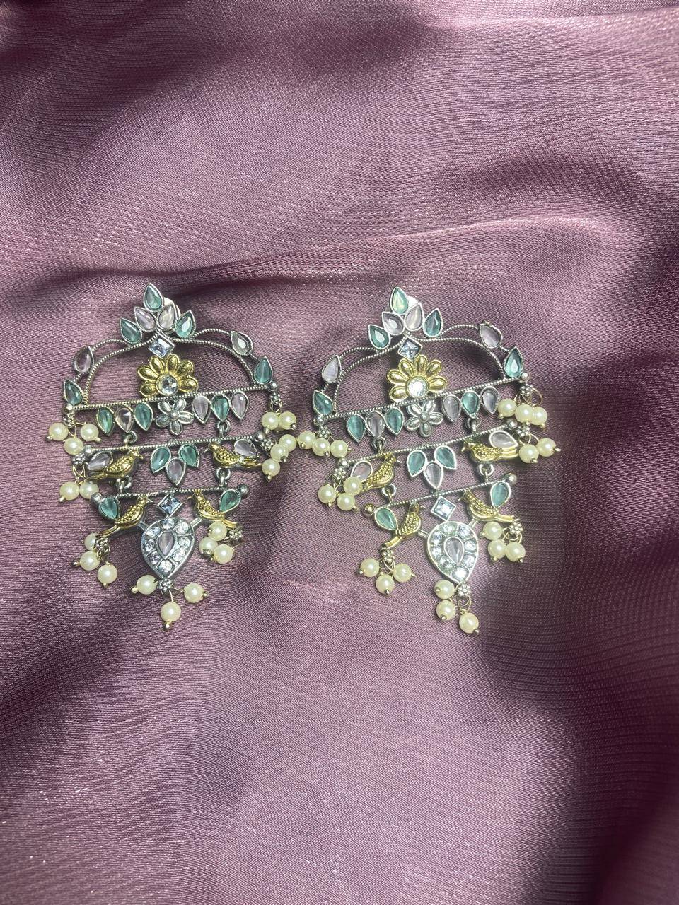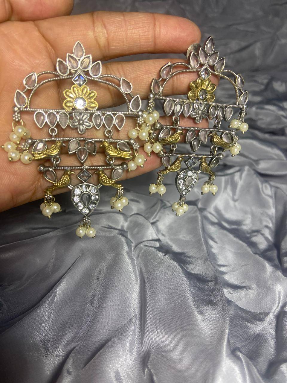 The Stile Sovrano Zar-e-Kashmir Kundan Chandbali Earrings are a tribute to timeless Kashmiri artistry and royal elegance. Designed in a classic chandbali form, this pair features layered arches embellished with kundan-style stones and finished with soft pearl drops for fluid movement. The dual-tone detailing adds vintage depth, while the balanced structure ensures comfortable wear despite the statement size. Perfect for weddings, festive gatherings, and traditional celebrations, these earrings elevate ethnic ensembles with heritage charm and refined sophistication. Created for women who value craftsmanship, culture, and understated grandeur, this design is a distinguished addition to any ethnic jewelry collection.