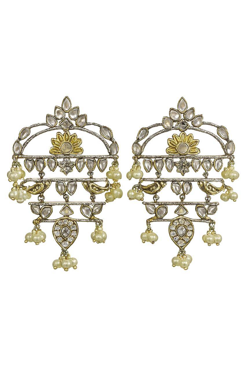 Zar-e-Kashmir Kundan Chandbali Statement Earrings with Pearl Drops | Heritage Ethnic Jewelry for Women